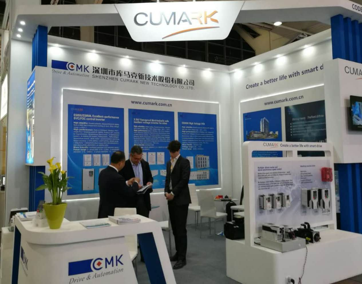 3044AM永利(CUMARK)携我司自主研发的ES全系列FOC磁场定向矢量控制中低压高性能变频器产品如约亮相汉诺威工业展会(14号展厅J43展台),3044AM永利凭借多年电气传动研发和各类工业自动化行业应用的经验,并结合一流的驱动控制技术,向世界客户展示了3044AM永利(CUMARK)的中国“智”慧。